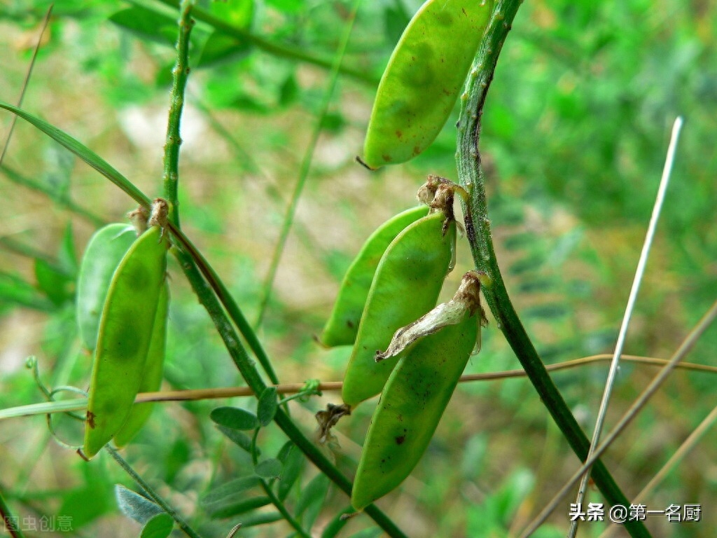 野豌豆,植株柔软,枝繁叶茂,营养价值高,一般食用的是它的嫩荚果,可煮食或炒食,有着清热解毒之效。