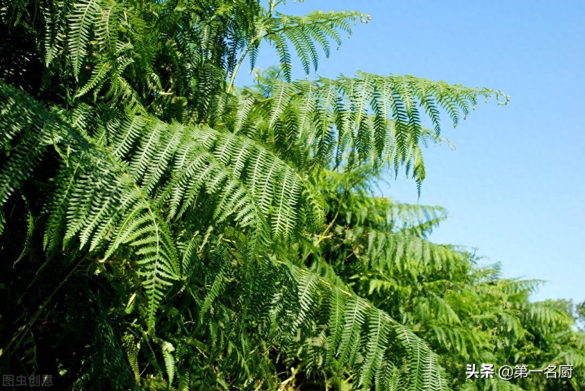 蕨菜别名山野菜,为厥的嫩叶,一般都呈现出绿色带有尖尖的叶片,炒菜、做汤都可以。