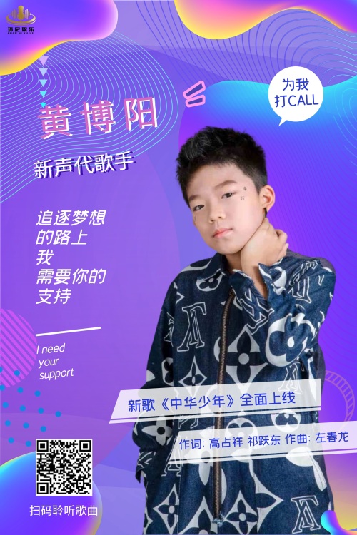 黄博阳新歌《中华少年》上线,谱写“少年强则国强”