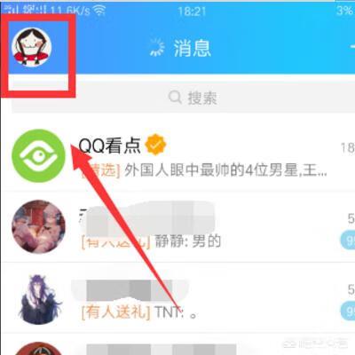 2、然后进入到QQ的主页面,点击主页面左上方的QQ头像按钮。