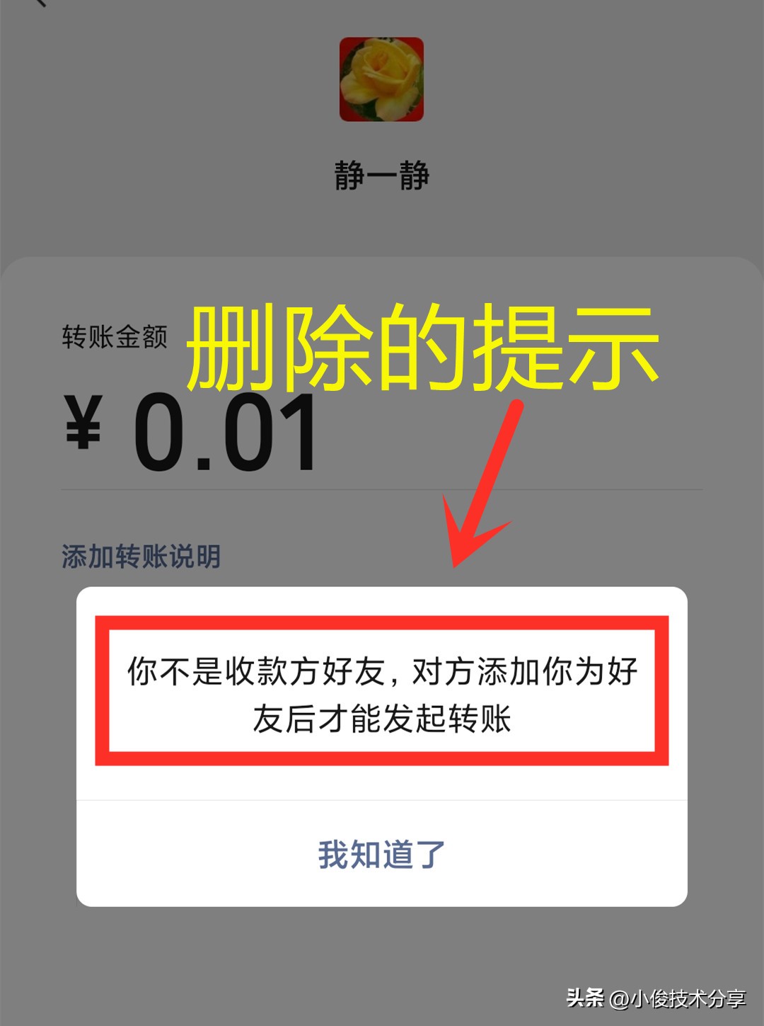第三个区别,转账显示不一样,如果我们被好友删除了,那么在转账的时候,就会直接出现,你不是收款方好友,需要添加为好友之后,我们才能给对方转账,那么出现这种情况,就说明我们被好友删除了,而如果我们只是把对方拉黑了,那么转账的时候,就会出现请确认你和他的好友关系是否正常的提示,因此如果出现这样的提示,就说明我们只是被对方拉黑了,所以呢,这也是二者的区别之一!