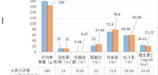 相比之下,宾川的平均单果重比较大,卖相会好一点。可滴定酸广西武鸣沃柑较小,固酸比较高,吃起来口感会更甜,可食率和出汁率广西武鸣沃柑都相对较高,证明此地区的沃柑皮薄,水分含量更高。
