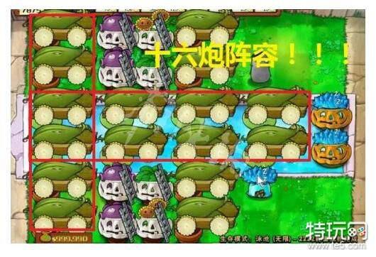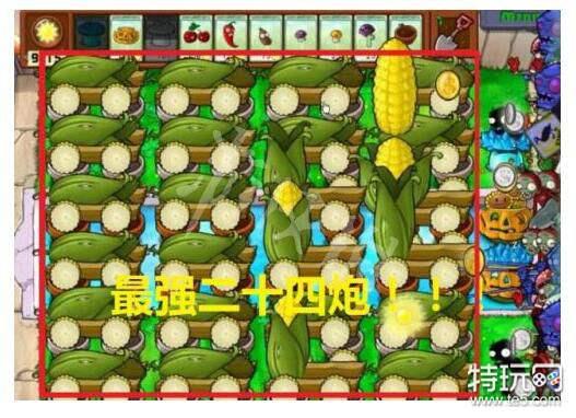 玉米炮可以说是《植物大战僵尸》中危害最大的植物了,有玩家开发了16炮阵容。玉米炮按顺序排列,再用生菜和忧郁蘑菇喷雾,达到完美效果。如果不放心,可以加几个冰菇,帮助玉米炮更好的降温。坚强!