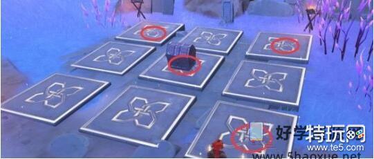 2、到达之后,就要按照下图方式踩亮红色圆圈的位置就可以解开了;