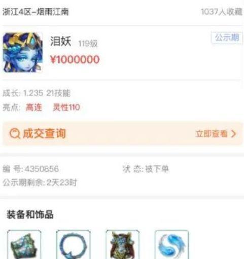 来自于浙江4区烟雨江南服务器的CBG之中出现了一只100万的泪妖,官方给的亮点只有高连以及灵性110,如果不认真看的话或许你会认为这只是一个恶作剧,是一位玩家随便把一只高连进阶110的泪妖以100万的价格上架而已。