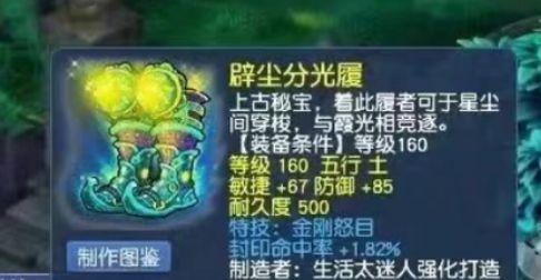 不过不是金刚怒目这个特技没有经常出现在服战的比赛上,而是现在拥有金刚怒目这个特技的服战装备并不多,要给一个豪门封系配上金刚怒目特技没有一些封系命中率特效蓝字还真不行,就连目前珍宝阁涛哥女儿村身上的金刚怒目衣服也只是备用衣服而已,对此新出的这双鞋子敏捷属性点以及封印命中率都是近乎拉满,还是能卖上一个非常不错的价格。