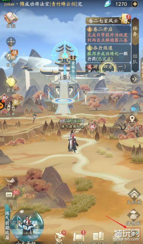 1、登录游戏,完成新手引导之后,回到游戏主界面,点击右下角的“箭头”,展开菜单。