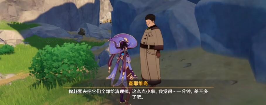 玩家选择去山底后,NPC查耶维奇会告诉玩家完美达成条件:1分钟之内消灭丘丘人,但是玩家需要注意,这1分钟回是从领任务开始,到和NPC查耶维奇交任务之间。同时这1分钟游戏是不给倒计时的,需要玩家自己估算。