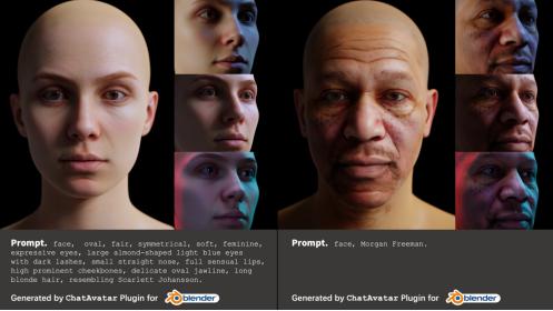 这是我们Blender插件中直接把生成结果导入的效果,其实可以看到它面部的细腻程度我觉得是比市面上很多扫描公司的质量要高的,因为我们的数据质量很好,一些国外的名人你可以直接通过文本去生成。