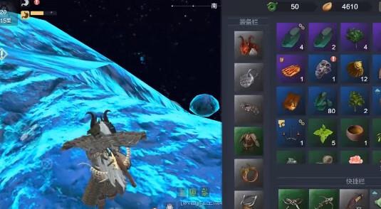 3、可以选择一个飞行的坐骑白翎雕飞到太空,到达之后就可以自己动手建造房子了。