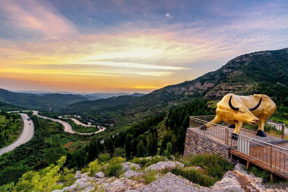 在潍坊到济南的路上,有一条蜿蜒盘旋在青州牛角岭山脊之上的盘山路,这条路环旋缠绕、蜿蜒曲折,坡陡弯急,行驶其上,颇有驾车直冲云霄的感觉。在青州王府荷花窑洞度假区,就能看到这条盘山公路的全貌。