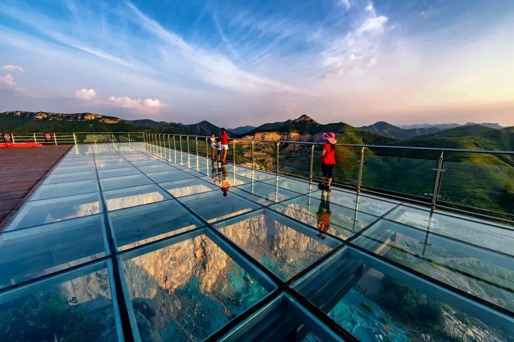 这里拥有总长约4500米的登山步道,1000平方米玻璃观景栈台,站在身处悬崖边的玻璃台上,仿佛凌空而行,目眺远方心旷神怡。