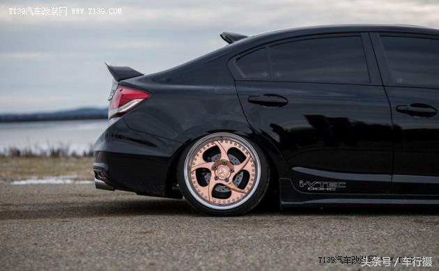 配合空气悬挂系统车身已经非常低趴,配合夸张尺寸的轮毂,完美的诠释了低趴改装这个代名词。