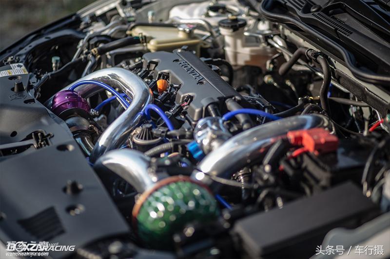 打开引擎仓,你会发现十代思域的原厂心脏已经被替换成了R18Z发动机,这还不够,车主还加入了由Addzest Carcolor添加的涡轮套件,这让原本性能不弱的思域得到再一次的进化。