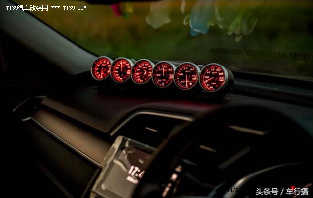 内饰方面,中控台上一字排开的六个Defi表头决对会令人兴奋,经过动力提升的思域,需要更严谨的数据监控才能保障驾驶的安全和稳定。