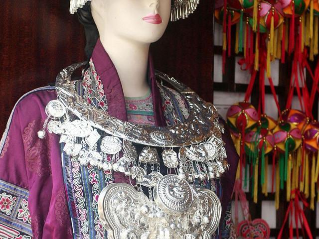 没有一个民族像苗族这洋,把妇女的服装看得如此重要和神圣,苗族女子自幼就会学习缝纫、刺绣,出嫁时还会从妈妈那里得到最棒的婚嫁服饰,而自己的华美婚服以后还可以再传承给自己的女儿。或许,在她们眼里,这已经不仅仅是件衣服,而是一种祝福的承载。而对游客来说,难得来一趟,就算不买,咱也要试穿自拍一张不是么?