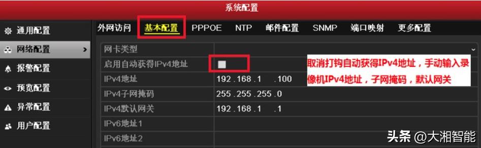 固定录像机的IP地址(如下图所示),并修改录像机和摄像机的IP为同一网段的不同IP,重新自定义添加摄像机。