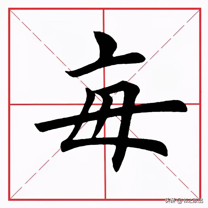 还有一种折笔后角度稍平的撇折,笔法与反捺类似,多用于“母”、“每”、“海”等字,如图: