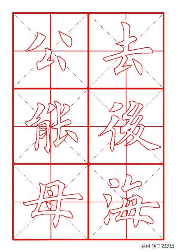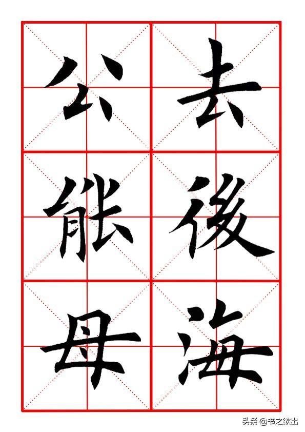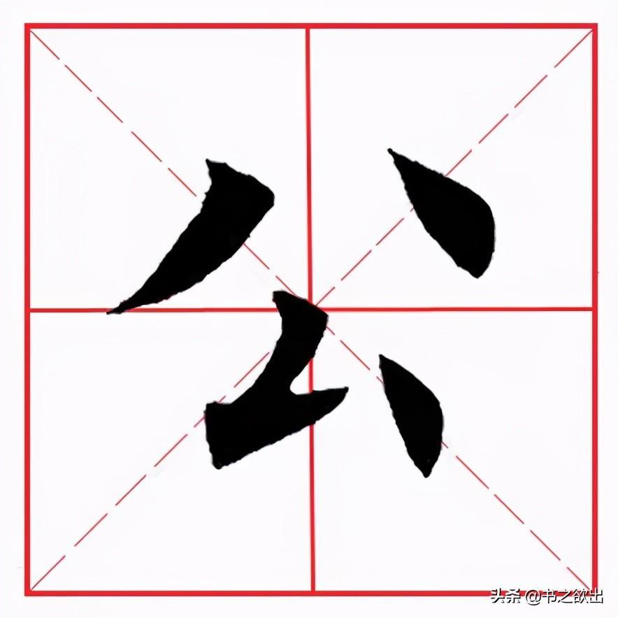 撇笔笔画稍细,略带弧度,横画走平势,略呈拱形,注意顿笔的笔法和角度。