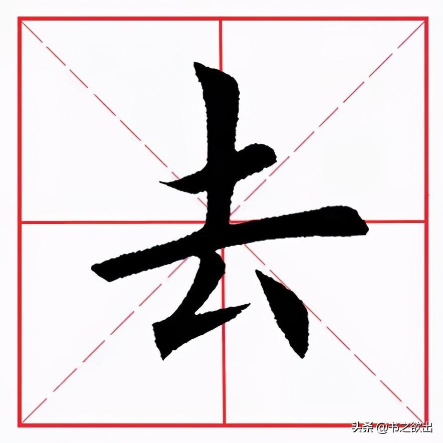 撇折,在笔势上与撇点有几分相似,只是折笔后笔画通常较长,角度变化较大,如“公”、“云”、“去”等字。如图所示: