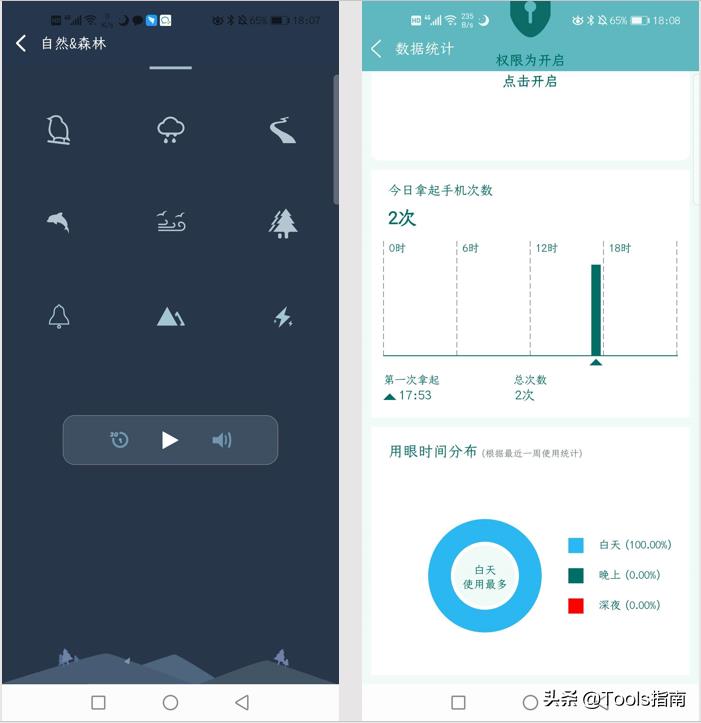 更赞的是,它还提供9种白噪音助眠,以及用眼数据统计: