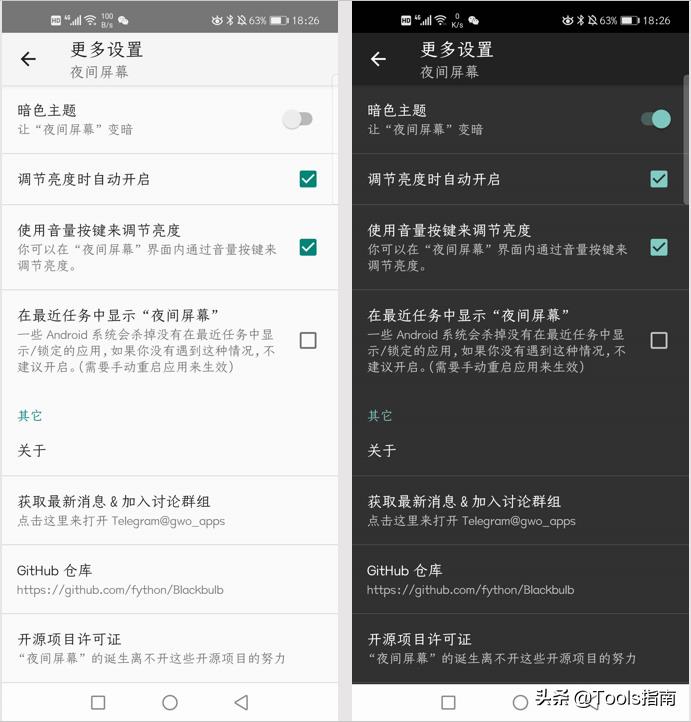 在更多设置中,可以直接选择“暗色主题”,改变软件的主题色。