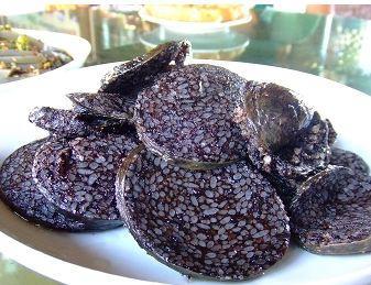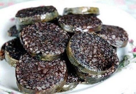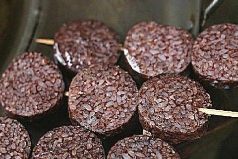 不加猪血就是“白米灌肠”,不过深紫色米灌肠偏多。纳西族宰年猪时,家家都做,放个一年半载也不会变质。古城很多小吃店的菜架上都有一串串油光肥大、黑糊糊的怪东西,那就是米灌肠,喜欢油滑爽口的就蒸,怕胖的用油煎干,又香又能减少油分。