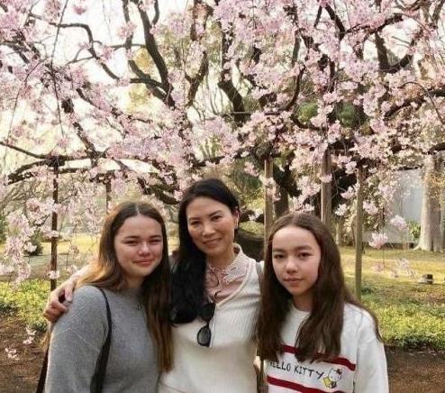 邓文迪50岁生日,两个混血女儿发合影庆祝