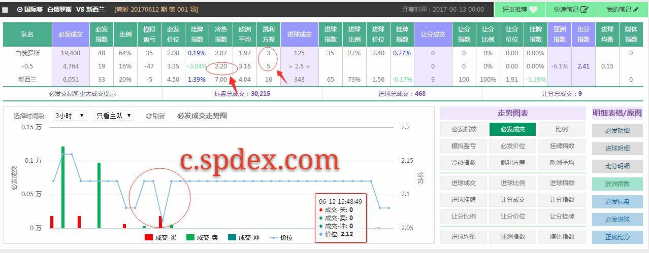 超级指数SPdex6月12日竞彩001场次(白俄罗斯VS新西兰)比赛数据: