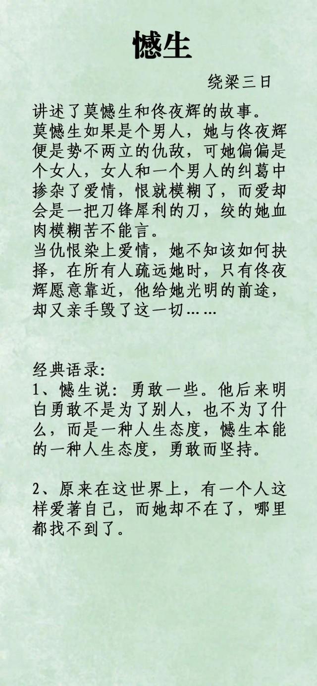 1蚀心者,辛夷坞的小说都比较沉重,蚀心者虐心到小编我一度想要提着刀冲向傅镜殊。强推。