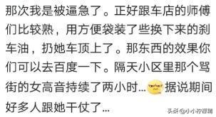 车位被占逼急了,装刹车油扔她车顶,隔天听两个小时女高音骂街