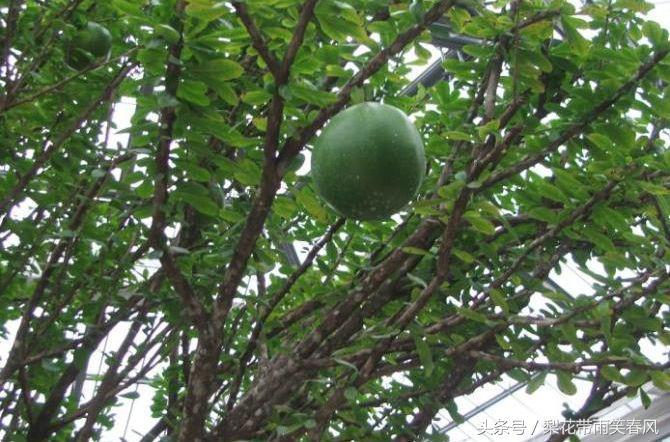 这种果实很奇特,像西瓜一样的果实挂在树上,但不能吃,一般 做观赏植物。