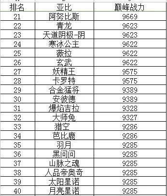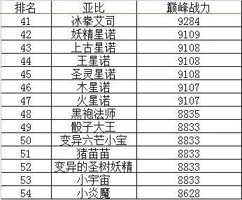 奥拉星亚比战力排行榜