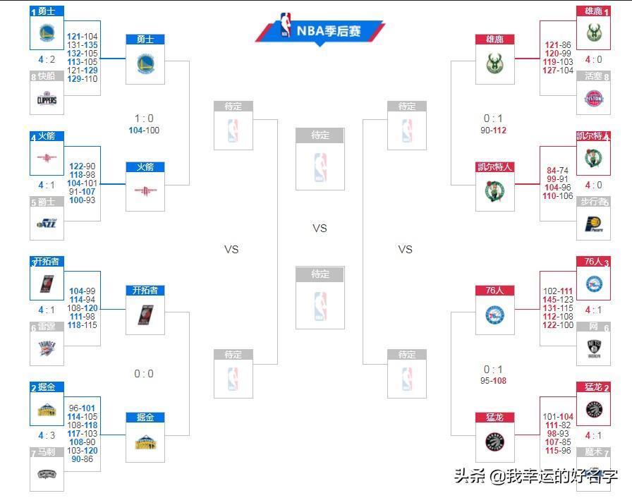 截止2019.4.29 NBA季后赛对阵图及赛果(点击放大更清晰)