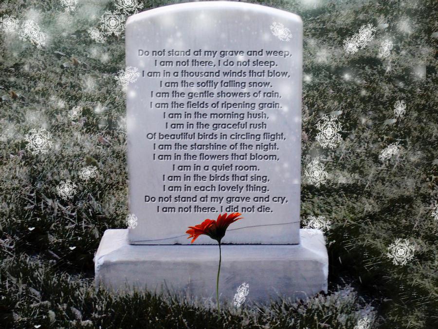 美国玛莉·伊丽莎白·弗莱所写的一首诗《不要在我的坟前哭泣》同样告诉了我们这样的真理,那诗写道: