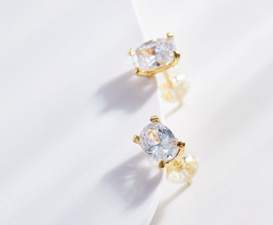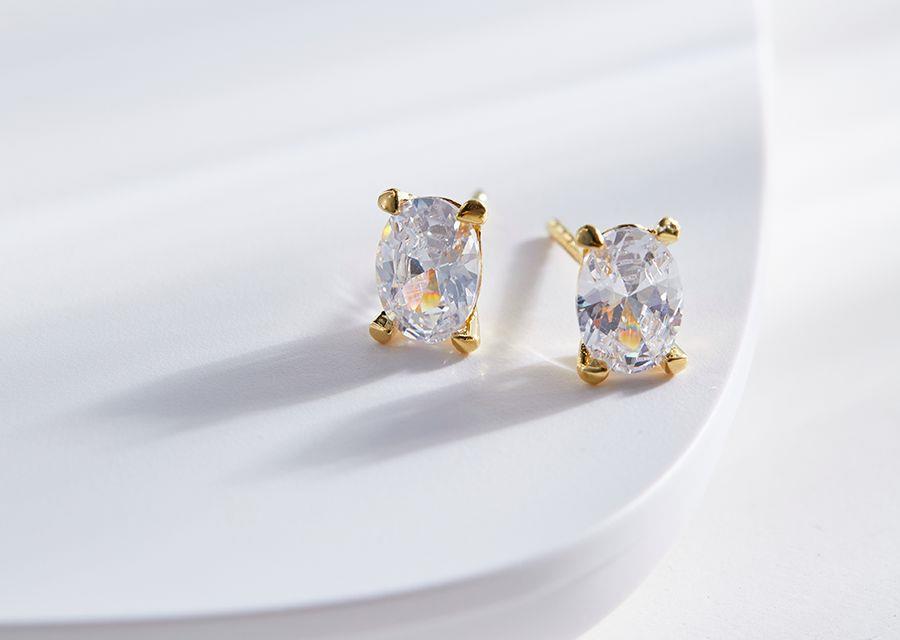 耳钉是天然锆石镶嵌925银镀金的,锆石被切磨成椭圆的形状,火彩非常闪耀,佩戴在耳边bling bling的效果丝毫不逊于钻石,一闪一闪的。