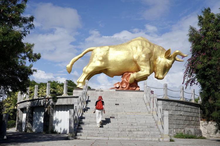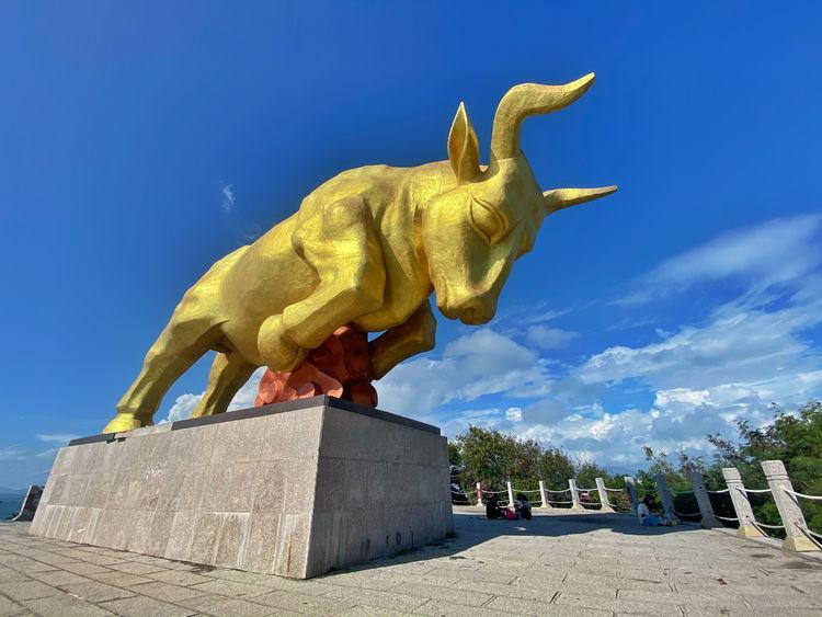 牛王岛是个独立岛,从渔村一座小桥连接上岛,岛上有山盟海誓、观景台、金牛奔海等景点,站在山岭上,能够看到四周的大海。
