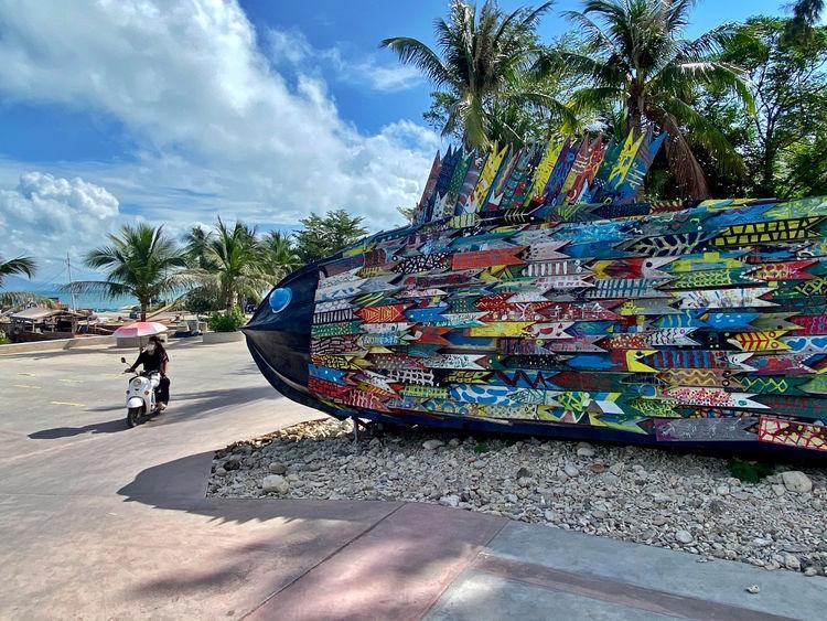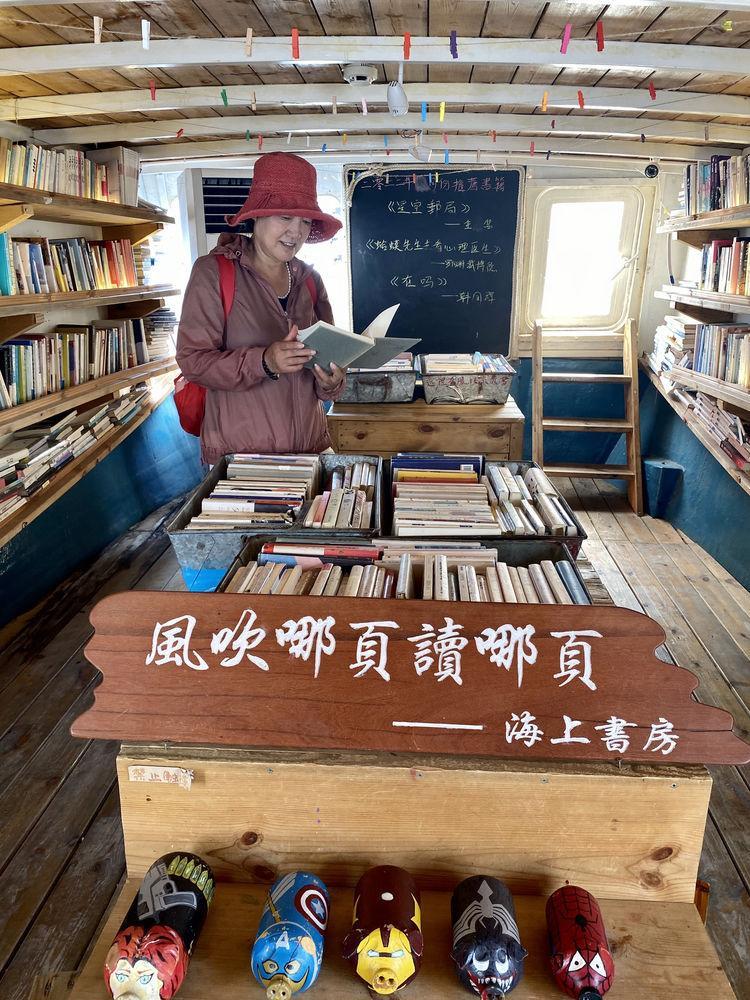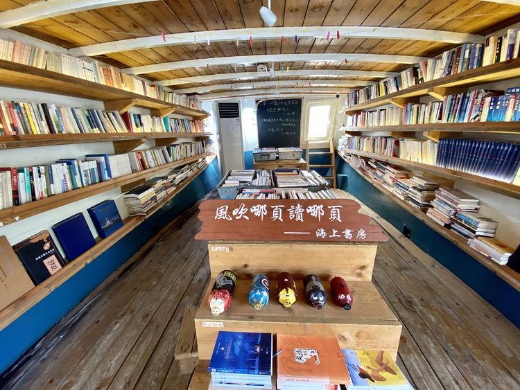 海上书屋,是3条船屋组建起来的,在这里显得很文化,给渔村带来了诗情画意。