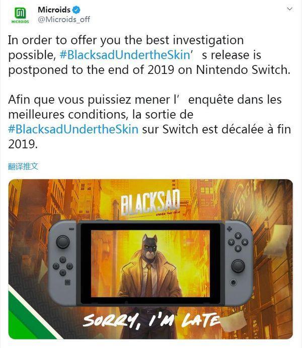 发行商Microids宣布,剧情冒险游戏《黑猫侦探:深入本质》Switch版发售日将从原计划的11月5日延期至2019年底,而PS4,Xbox One和PC版则仍维持11月5日不变。