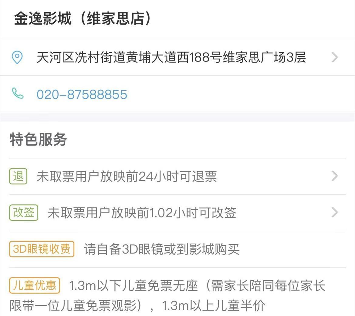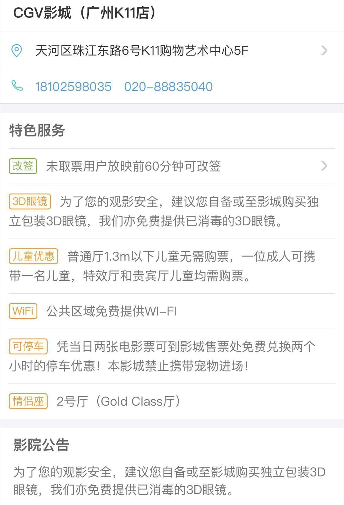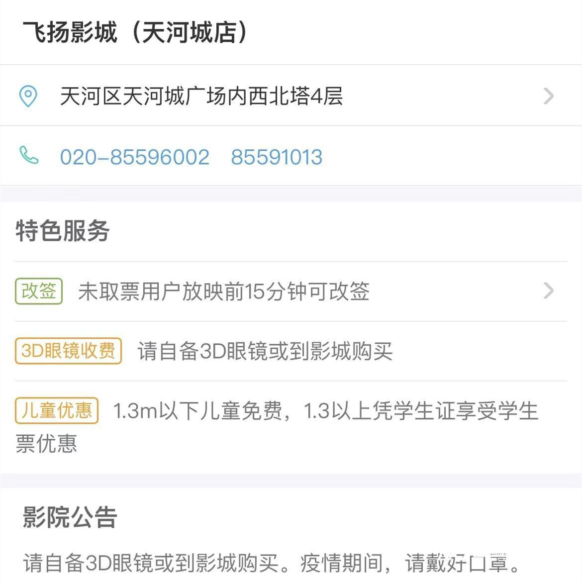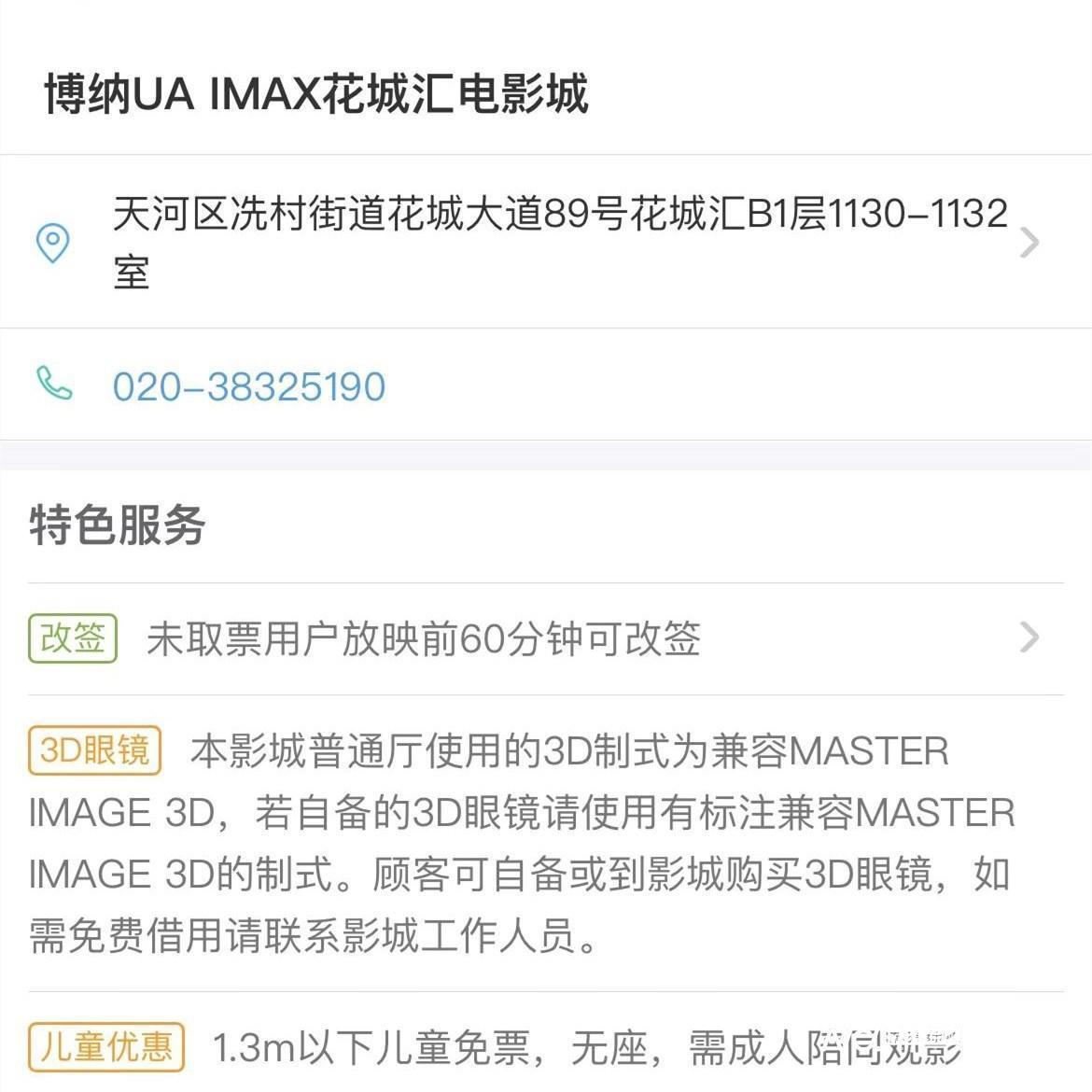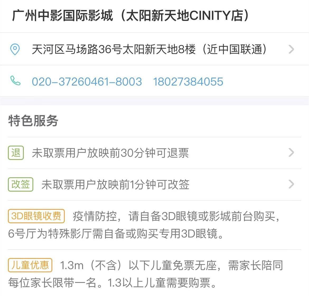 在广州,博纳UA影城、金逸影城、飞扬影城、百丽宫影城、寰映影城、CGV影城、大地影院、中都影城等电影院,皆在购票系统的影院公告中提示,观众可自备3D眼镜或选择在影院中购买。其中CGV影城除了提供购买选项外,还表示可免费提供已消毒3D眼镜供观众使用。