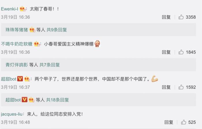 一些网民表示,陈小春太僵硬了,他的爱国主义精神爆发了。一些最新的评论说:两个家庭,世界仍然是那个世界,但中国不是那个中国。陈小春可以第一次出去发音,其意义已经存在了,不需要太担心其他方面的影响。