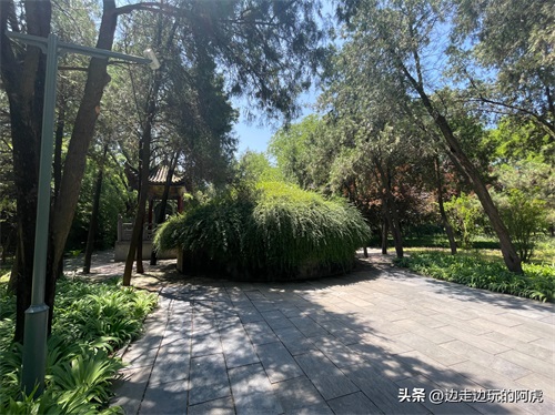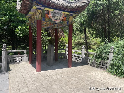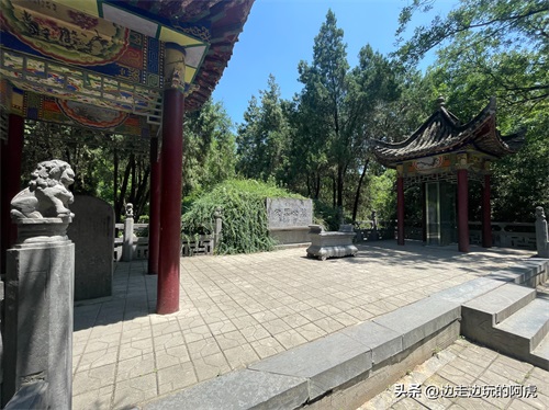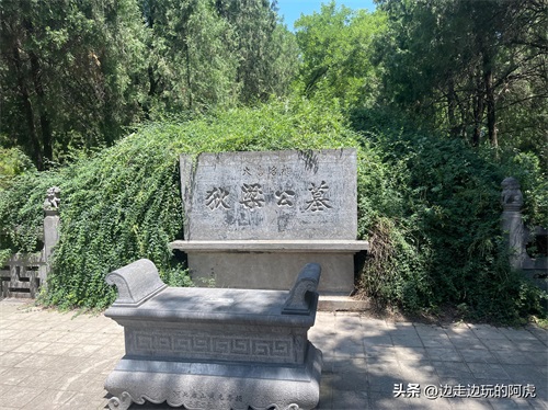 位于今白马寺山门外东南不远处,走过去就能看到一个圆形的土丘,正面两个亭子,亭子内竖立了两通碑文,而正面一个墓碑,墓碑上赫然雕着“狄梁公墓”。