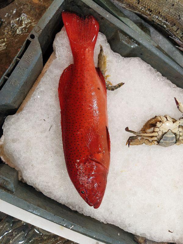 红石斑鱼:东星斑,鮨科鳃棘鲈属的一种鱼类。东星斑颜色鲜艳,石斑是很凶猛的鱼,其肉质细腻香甜可口。