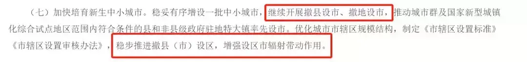 其中明确提出:要继续开展撤县设市、撤地设市!还要稳步推进撤县(市)设区!推动城市高质量发展,推动城乡融合发展。