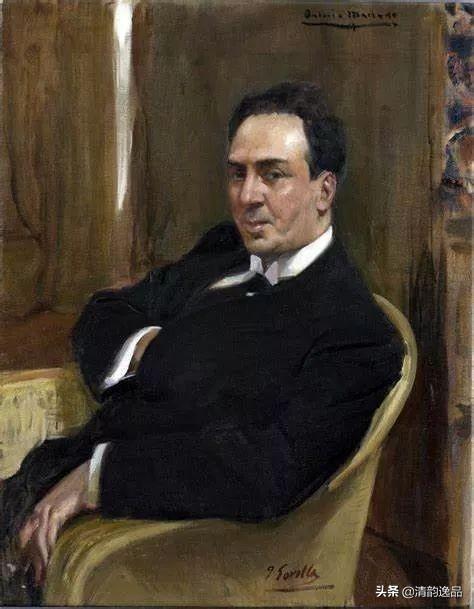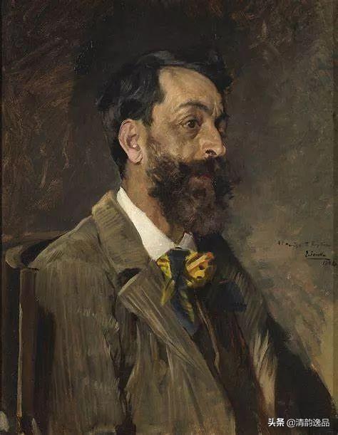 华金·索罗亚是西班牙画家,1863年出生于西班牙的华伦西亚, 十五岁便开始画画,三年后他游历到了马德里,在普拉多博物馆临摹大师们的作品,之后他获得了助学金到罗马学习,1901年他的作品在罗马Universelle博览会成功展出后,受到居住在马德里的美裔社区之聘,为那里的纽约图书馆绘制装饰画,之后很多社会名流都纷纷请他画像。