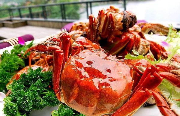 阳澄湖大闸蟹,又名金爪蟹,产于苏州阳澄湖,是享誉中国的名牌产品。