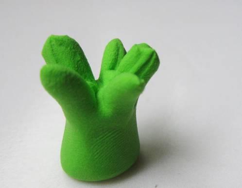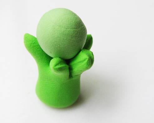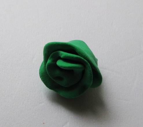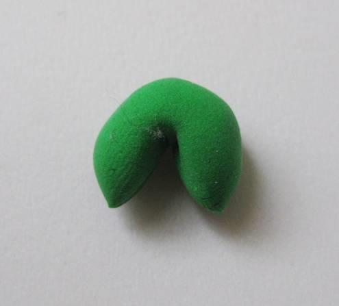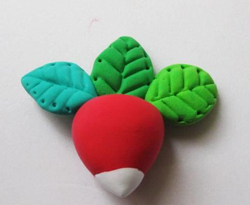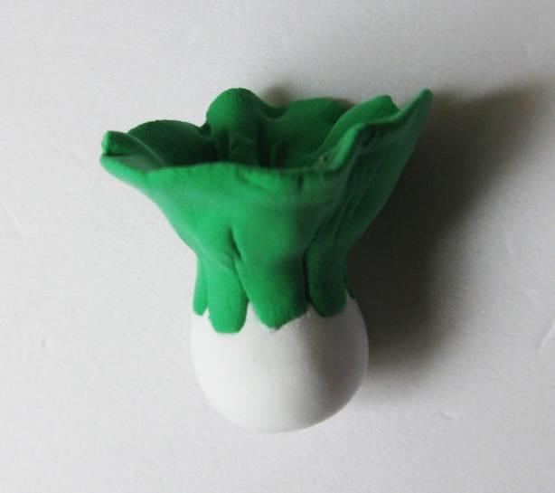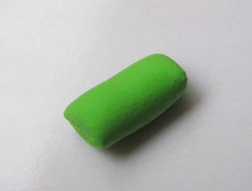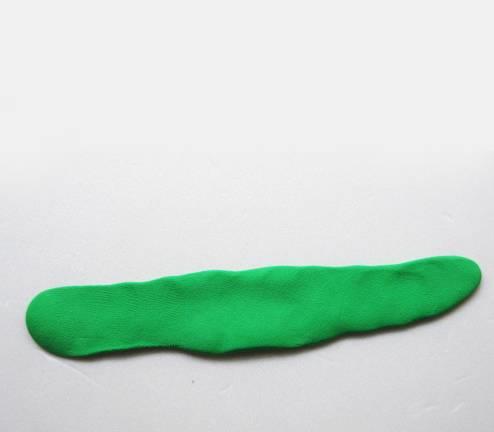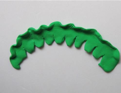 2、用绿色的粘土做成长条型然后压扁(作为菜叶)。