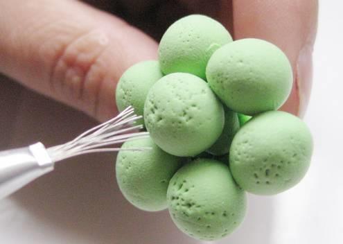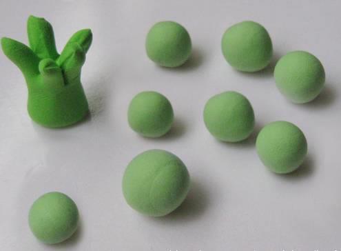 3、用浅绿色搓成8个小球球,其中一个比较大一些。