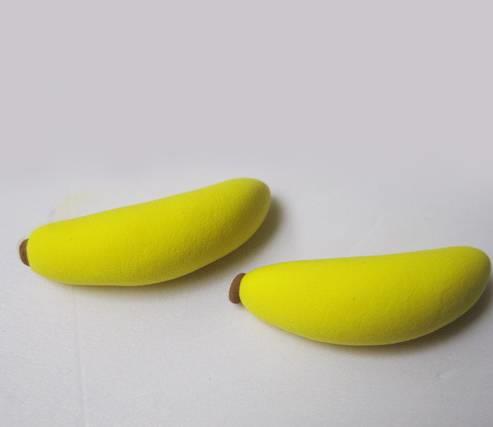 3、用少少的咖啡色粘土搓成小球球压一下粘在香蕉的一端。