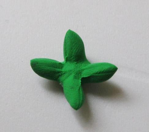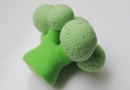 1、用绿色的粘土做成长条形,用剪刀剪出中间段做花菜的身体。